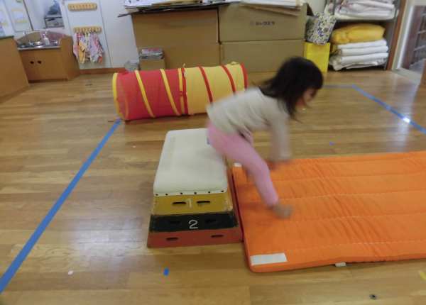 久しぶりの跳び箱や、トンネル、マットなどに大喜びの子どもたちです。
