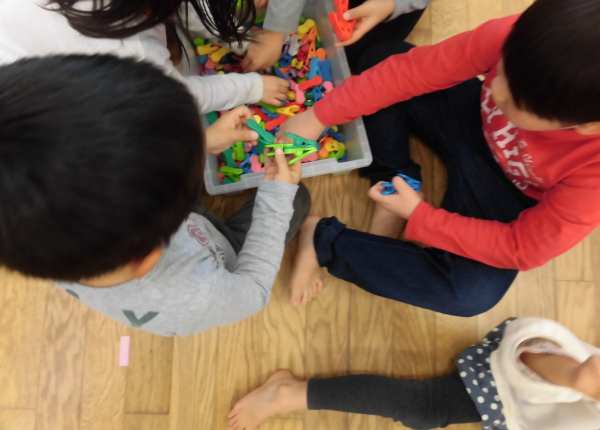 部屋に帰ってからは友だちとおもちゃで遊びました。