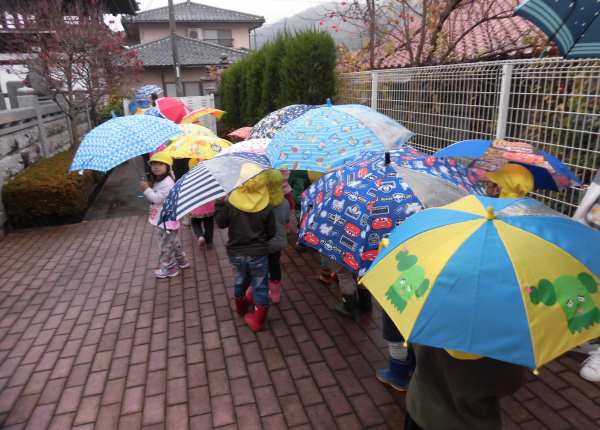 外は雨でしたが、みんな傘をさして、無事に歩いて行くことができました。