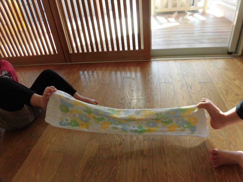 足の指先のみを使って綱引きをしてみました。