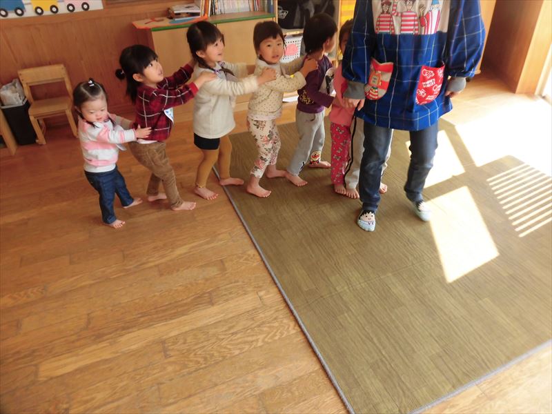 「一匹のぞうさんくもの巣に〜♪」と歌いながらみんなでつながって