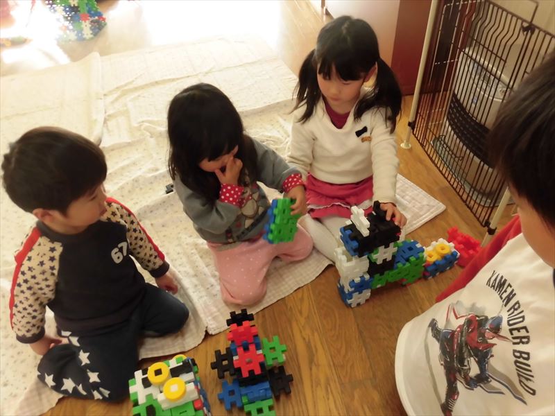 お兄さん・お姉さんの遊びはとても刺激になり、一緒に遊びながら想像力を育んでいるきいぐみの子どもたちです。