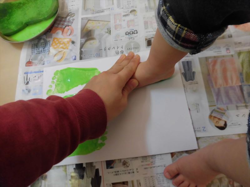 先生と一緒に足形をとりました。