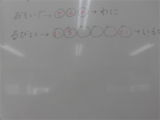 今日も良い天気。戸外でしっかり体を動かした後は部屋に帰り穴あきしりとりを楽しみました!