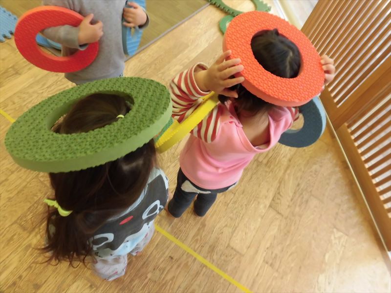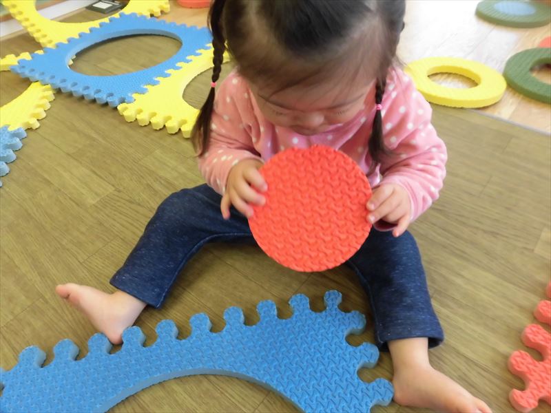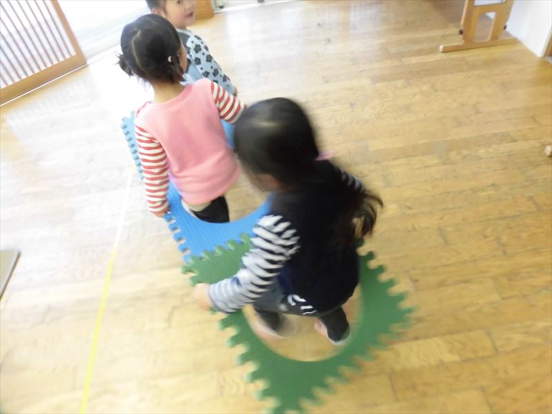 大型パズルでいろいろなものを作って遊ぶのが大好きなあか2くみさん。