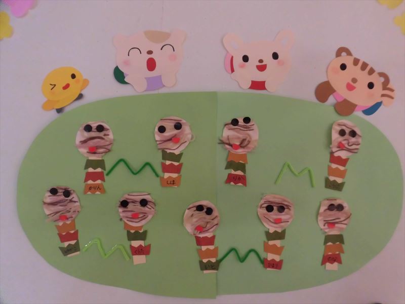 あか2くみでは先日、春に向けてつくしの製作をしました。