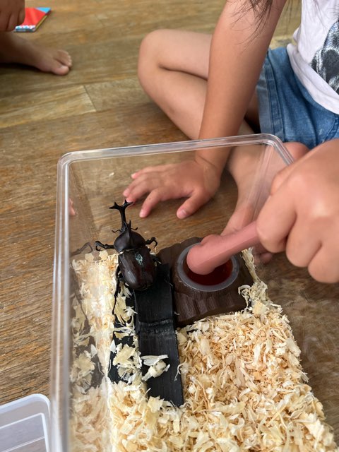 「わあーおおきいね!」「かっこいいね」「エサのゼリー食べるかねえ」