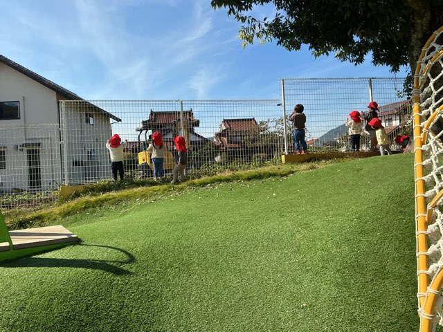 今日は園庭の横にショベルカーが来て、お仕事をされていました。