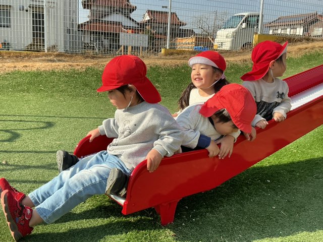 みんなですべり台!電車みたいになっちゃった!