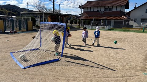 今日はボールにサッカーゴール、乗り物などを出し園庭で遊びました!