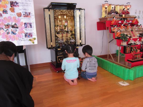 今日から、あおぐみさんはももぐみさんのお参り当番に一緒に参加させてもらって、どんな感じなのか学んでいます。