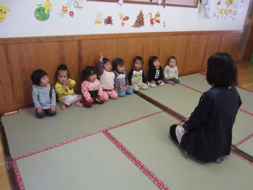 あか1くみではお母さん座りをして話を聞けるよう頑張ってきました。