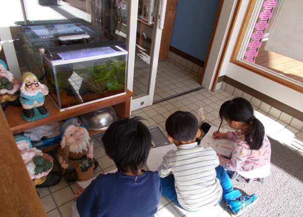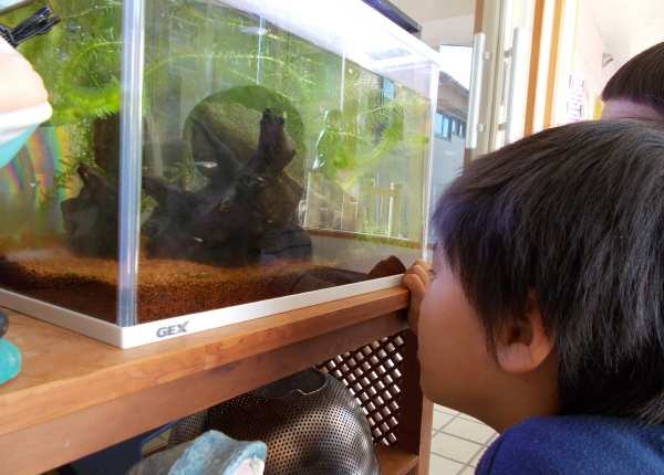 「それから草がたくさんあるね」「メダカは泳ぐのがはやいね」など