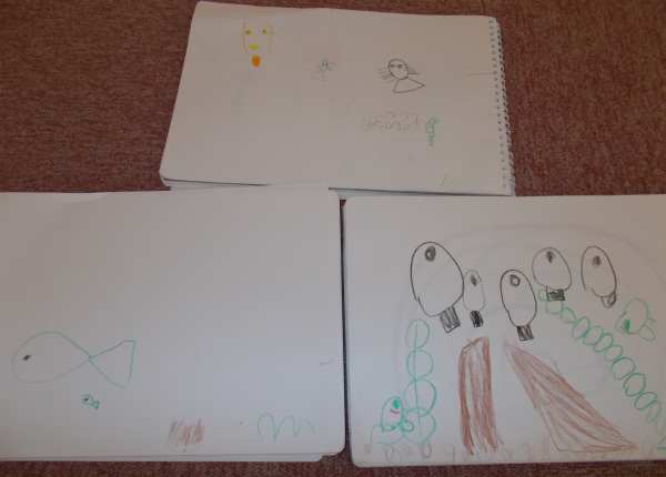 いつも保育園のみんなのことを見てくれているメダカやエビを描くことにしました!!