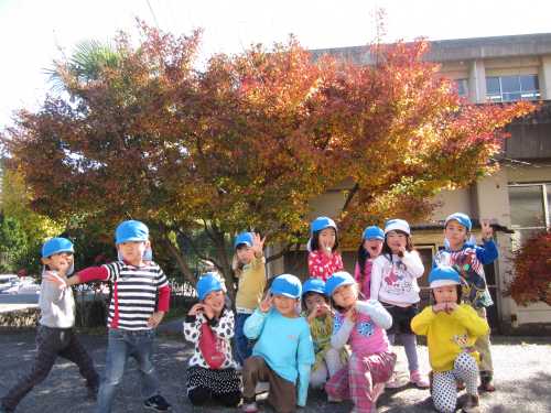 木々の葉もきれいに色づき、「きいろのじゅうたんみたいー!!」とおおはしゃぎの子どもたちです。