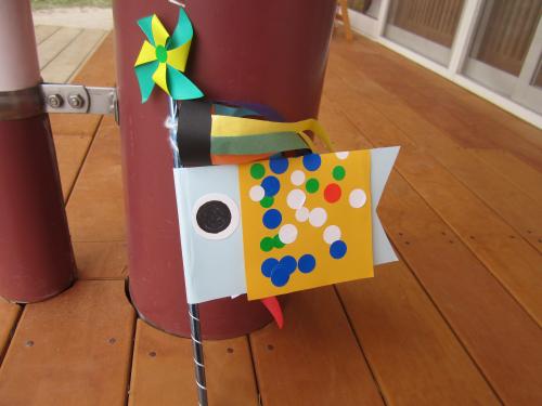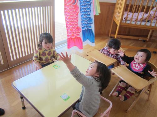 はじめに、みんなで歌をうたい、こいのぼりにタッチ!