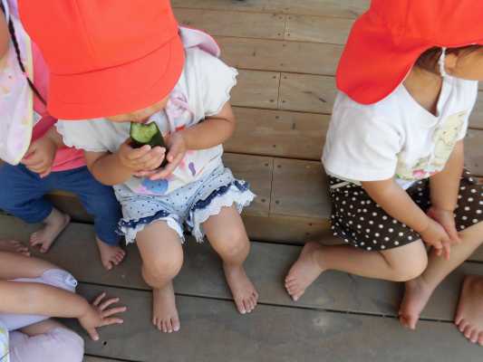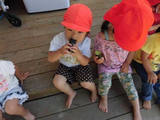 さっそくいただいたキュウリをみんなで食べました(^0^)