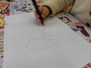 好きな色で好きなものをどんどんと描いていました。