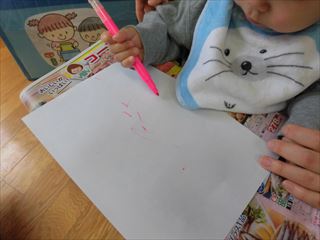 0歳児さんも先生と一緒にかきかき。