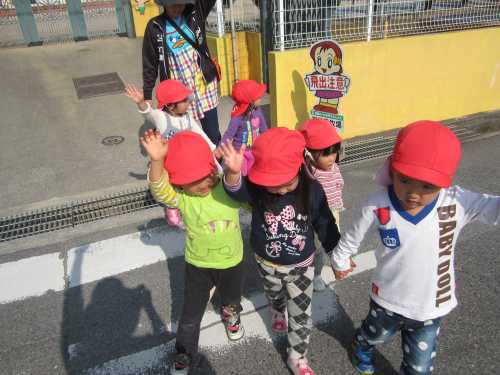 今日もいい天気だったので、みんなで手を繋いで仲良く散歩にいきました。