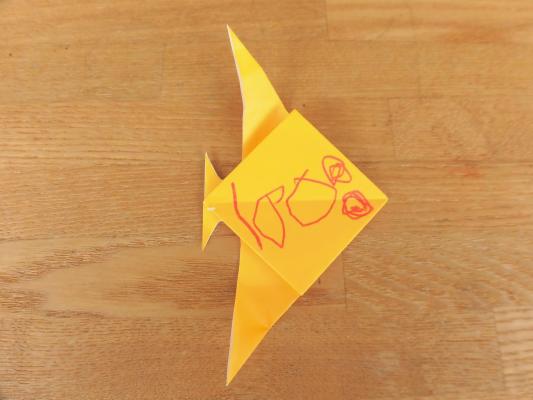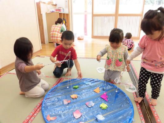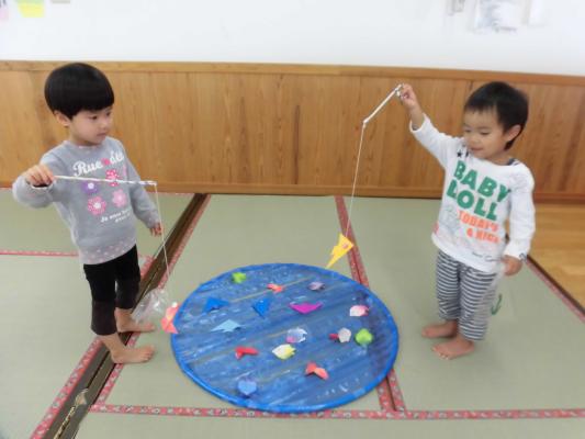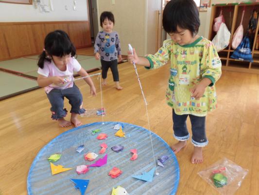 釣り竿を持って、好きな魚を集中して釣ろうと頑張っていました♪