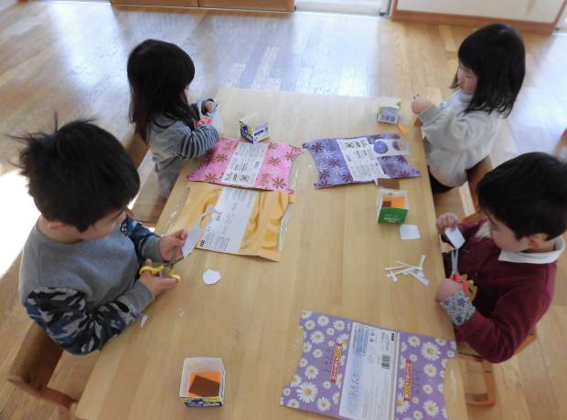そのあと、のりやはさみをつかって顔のパーツを切ったり、貼ったりしていきました。