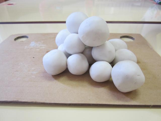 明日のお月見会に向けて粘土で「ころころ」「こねこね」とお団子を作りました