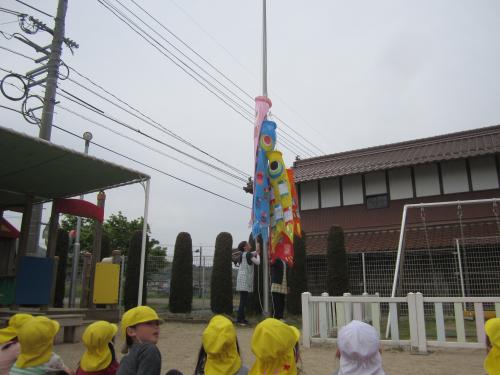 歌いながらこいのぼりを飾りました(*^▽^*)