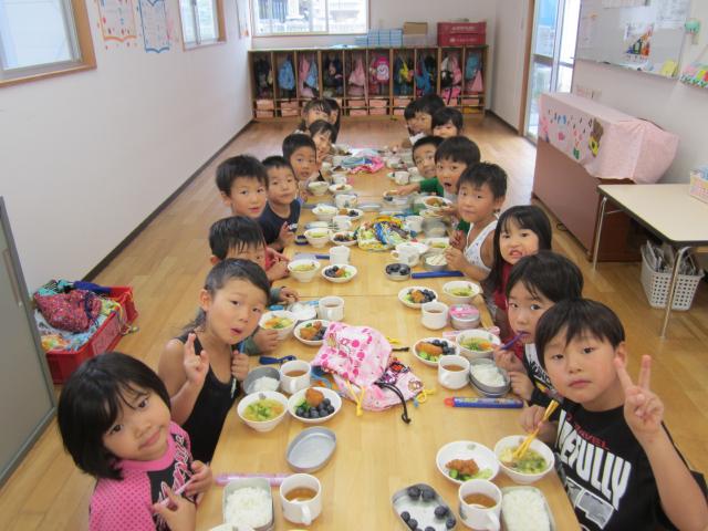 「今日のおやつはたぶんお団子じゃろ〜」と、喜びながらみんな勢いよく完食しました!