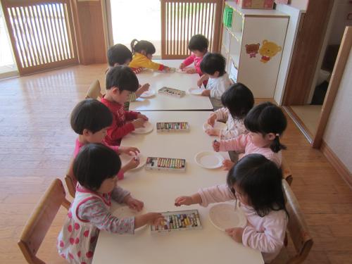 イスに座って一人ひとり好きなものを自由に描くことができました(o^―^o)