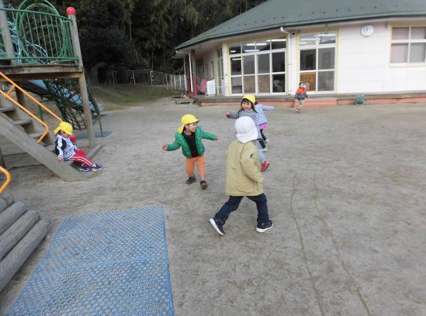 子どもたちは寒さに負けず、園庭を元気に走り回っています。