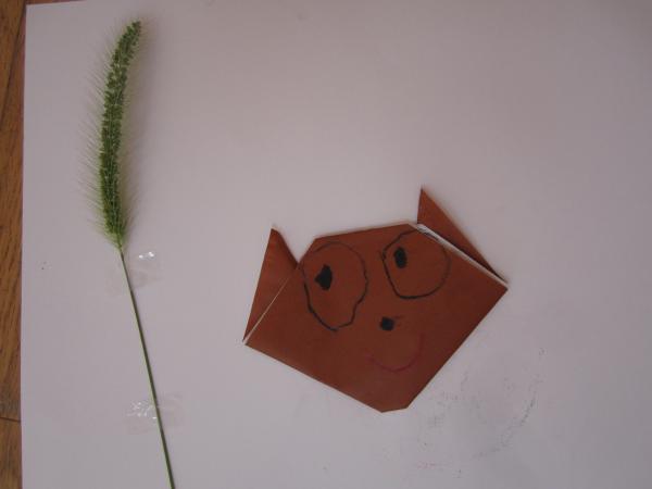 朝のお散歩でとってきたねこじゃらしをテープで貼って完成させました。