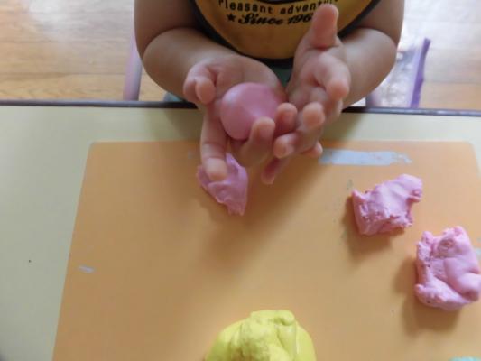 今週のあか1くみさんは先日作った小麦粉粘土遊びをしました。