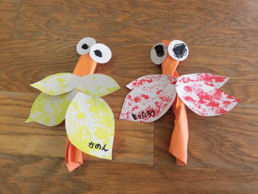 葉っぱで作った羽を貼ってできあがりです(^○^)