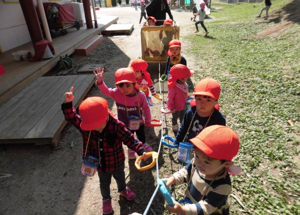 「しゅっぱつ、しんこう〜!」と元気よく保育園をでた子どもたちは、