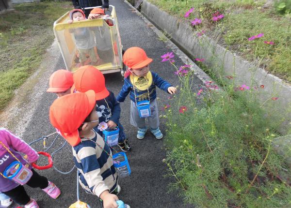 昨日のあか1くみさんは、秋空の元散歩に出かけました。