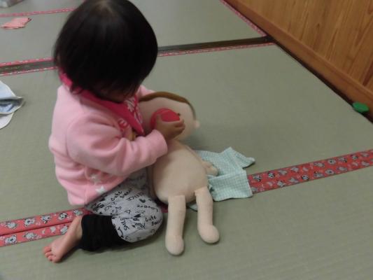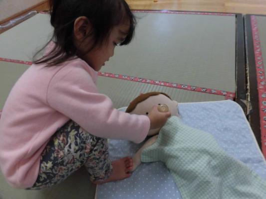 あか1くみさんは、お人形で遊ぶのが大好きです。