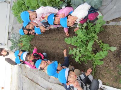 「ねぎのにおいがする」と一人ひとり手にとってよく観察したあと、穴に植えて優しく土をかけてあげました。