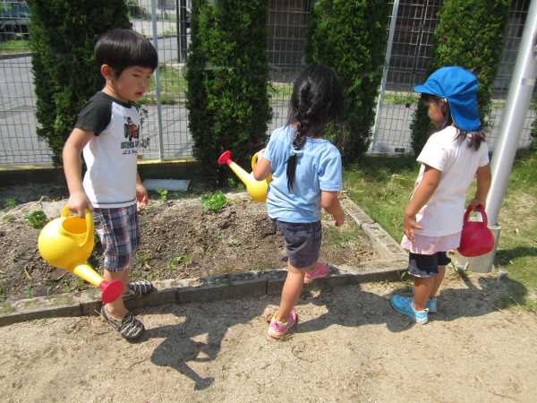 子どもたちは交代で、アサガオや野菜の水やりをしてくれています。