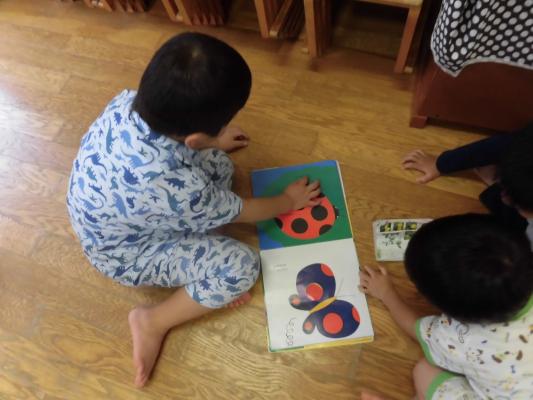 絵本を見たりあいうえお表を見てだいぶ文字を覚えてきた子どもたち。