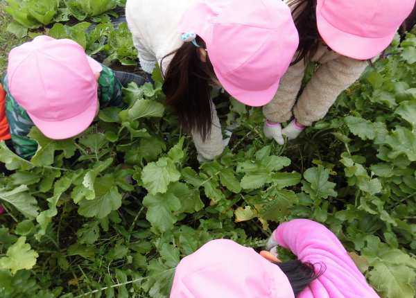 大根掘りに行く前から抜き方をイメージトレーニングしていた子どもたち。