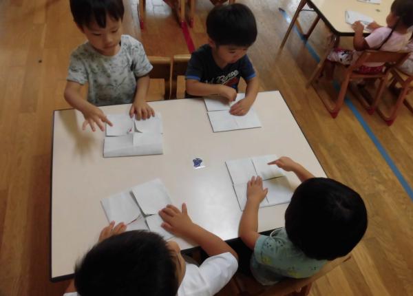 カレンダーの紙なので大きくて少し大変でしたが、かどっこを合わせて、上手に折ることができました!