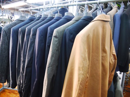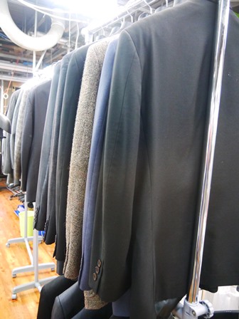 水洗い後ズラッと並んでるCOATやジャケット。