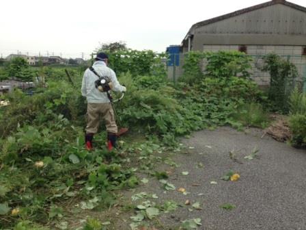 木更津工場の裏地の草刈りを行いました。が、途中雨が降り