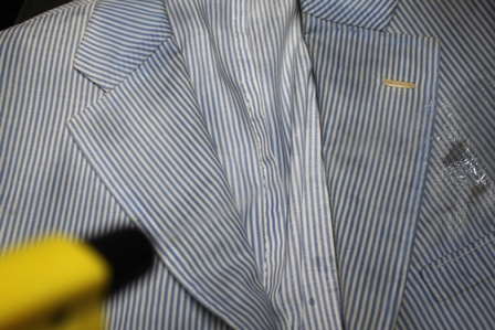 ですから、まず、ドライクリーニング用の洗剤を、汚れのきつい部分に付