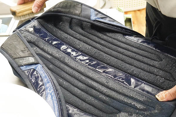 リュックの上側やサイドは汚れが激しいので念入りに擦っておきます