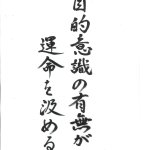 「目的意識の有無が運命を分ける」 人は自分なりの最高・最大の目的意識を しっかりと持つことが出来れば、 最大の努力に励み、 何事にもおじけづかないように成れ、 自分の努力・行動を怠ることが無くなり、 ...