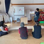 その後、こども園の年長児さんが郵便屋さんになって、支援センター宛の年賀状を届けてくれました。郵便屋さんから受け取った年賀状を、嬉しそうに見たり指さしたりする姿が微笑ましかったです。