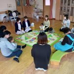 今日は、ボールプールで遊びました。プールを作ってボールを入れると、水泳のように元気に跳び込んだりボールの感触を楽しんだりしました。プール作りから片付けまで、みんなで楽しみながらしていました。