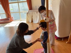 今日は、身体計測をしました。張り切って計測する子、少し戸惑っていたけどお友だちの様子を見て計測する子とさまざまな様子が見られましたが、みんな元気に大きくなっていました。